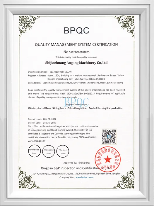 Aogang Co. Машинного Оборудования, ЛТД. специализируется в R&амп;D и производство сварных трубных заводов, скоростных прямых, образующих квадратную изделий, формировать оборудование, линии продольной резки, вырезать по длине линии и соответствующие бы Вспомогательное Оборудование. Обладая более чем 20-летним опытом работы в отрасли, мы зарекомендовали себя как надежный производитель оборудования для формовки стальных труб.
